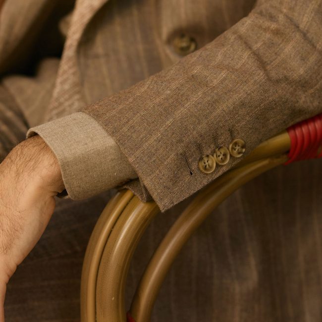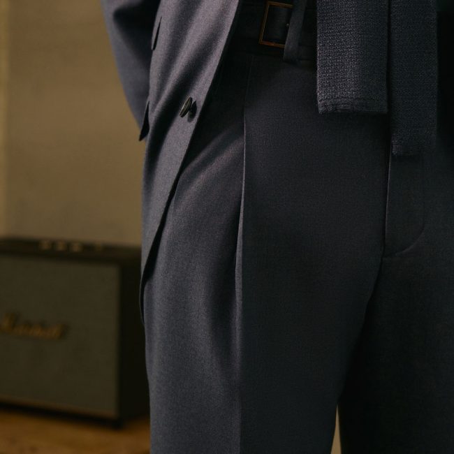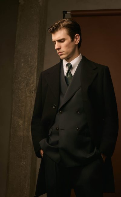El resultado es una prenda que ajusta impecablemente y proyecta autoridad, discreción y lujo silencioso.