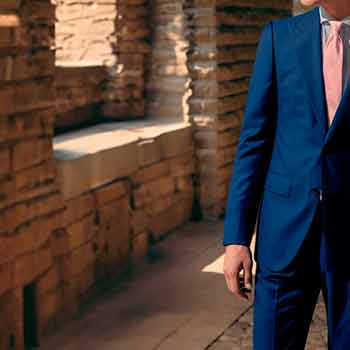 El azul marino es el color más versátil para un traje de hombre. Prolonga su vida útil llevándolo con camisa y corbata, o usa solo la chaqueta con jeans y una camisa abotonada.