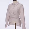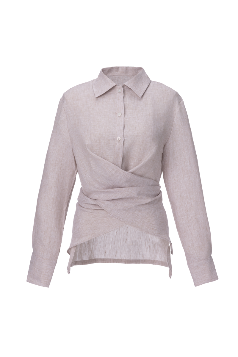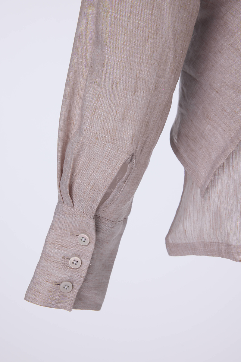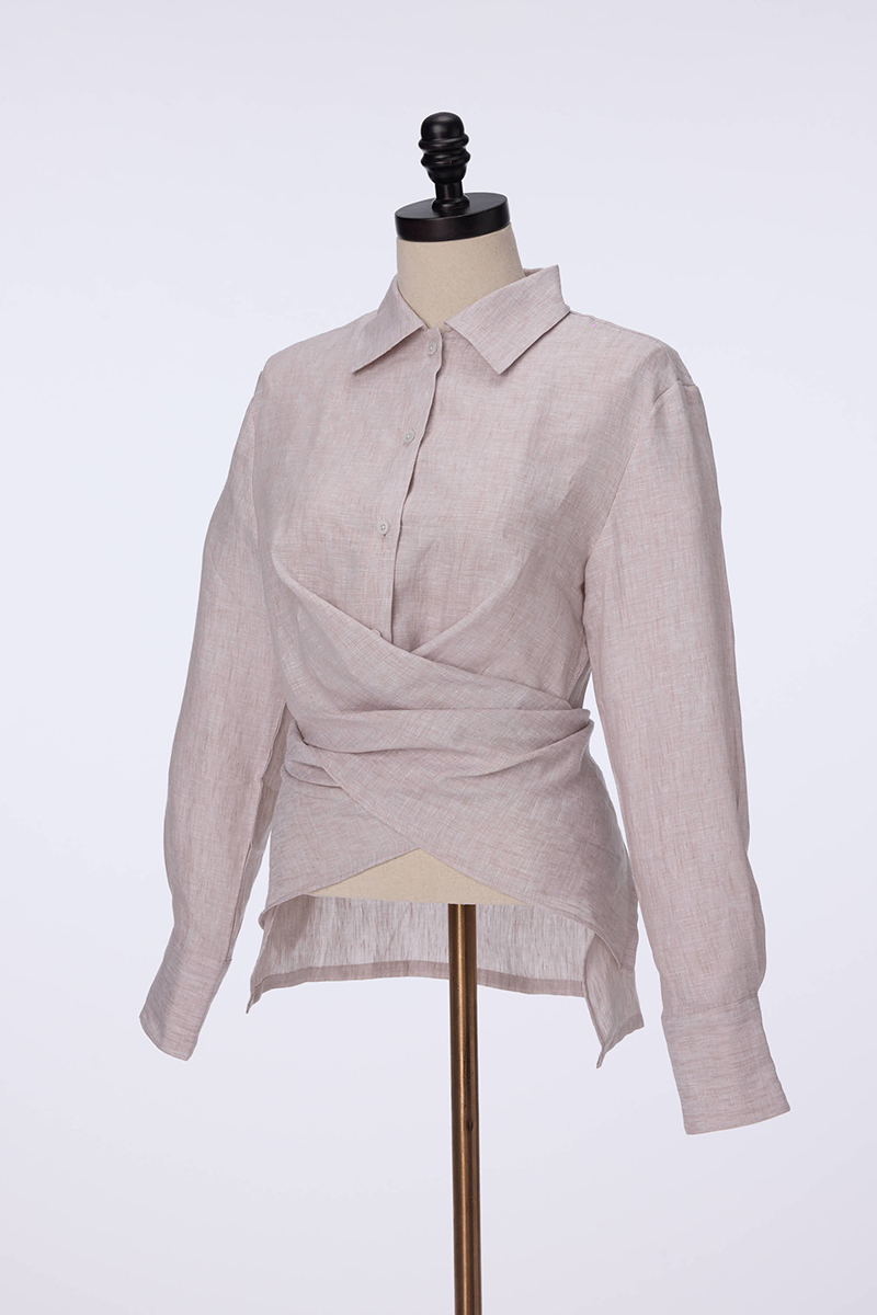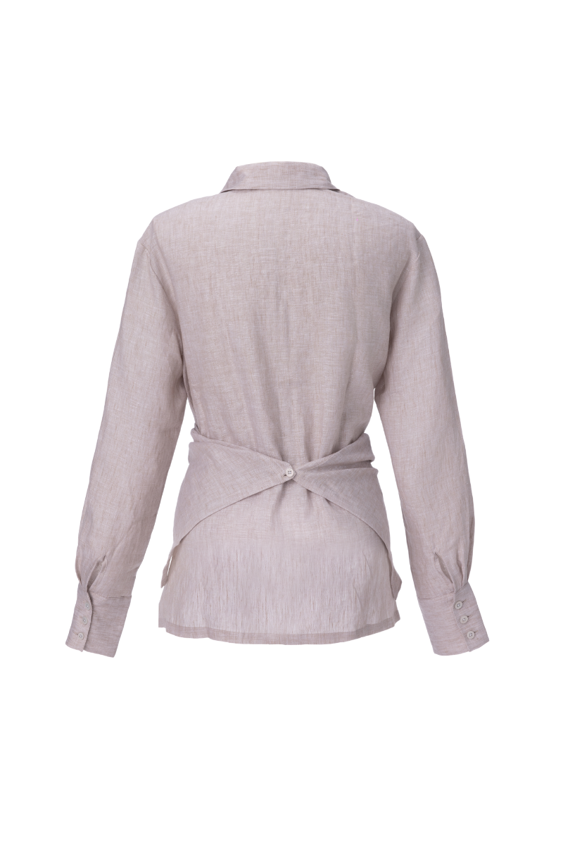 Blusa de lino, diseño envolvente con botón en espalda.