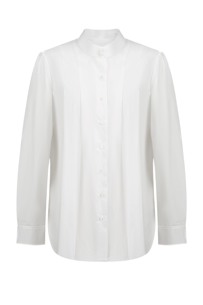Corte holgado, cuello alto moderno, cuatro pliegues en la parte delantera, diseño especial de pliegues en la espalda, puños ajustables.