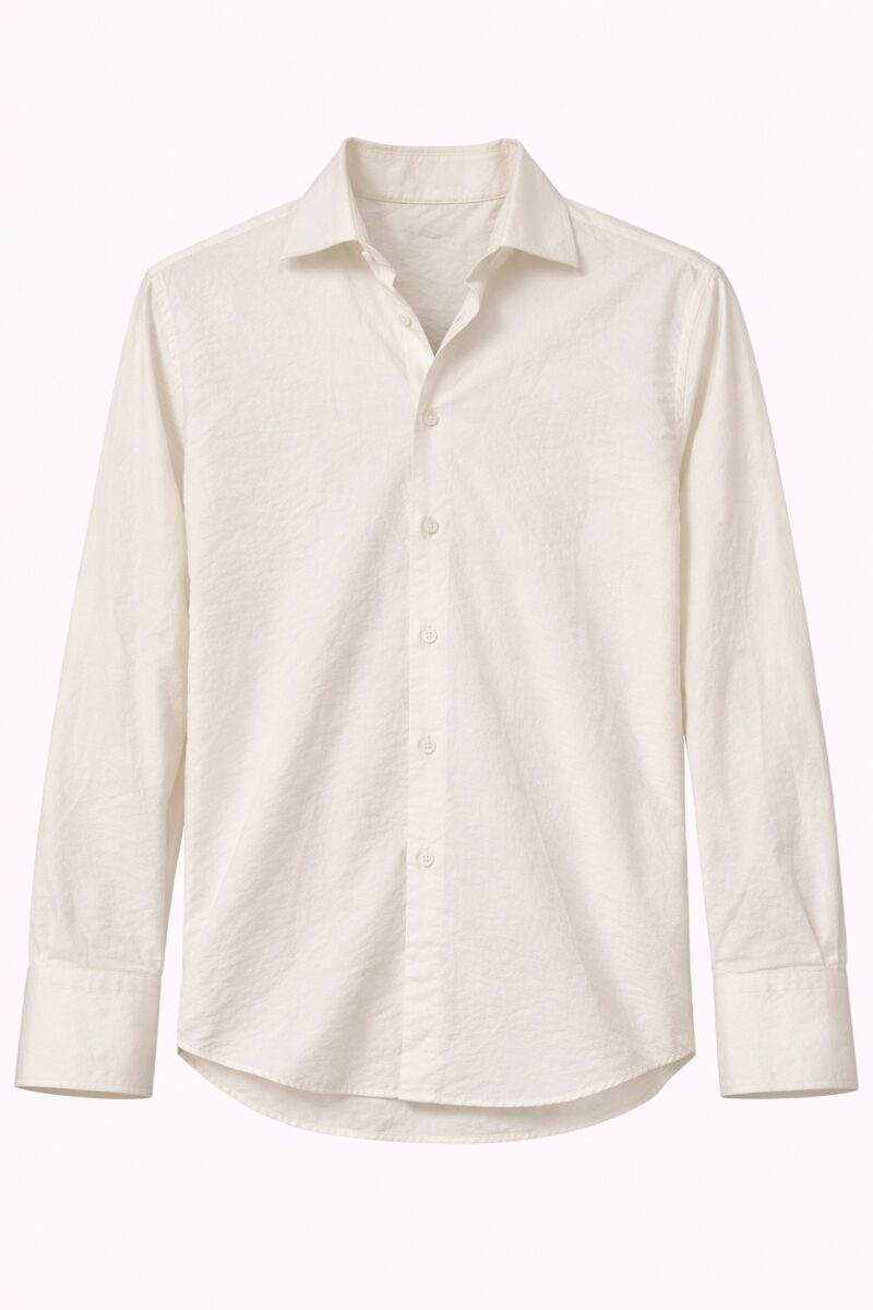 Camisa de tono suave y diseño limpio que aporta luz y elegancia discreta.