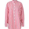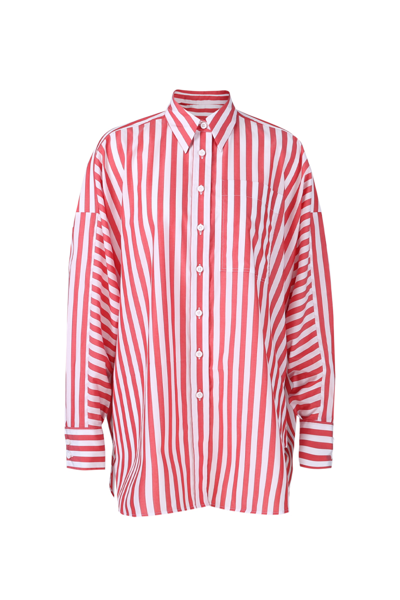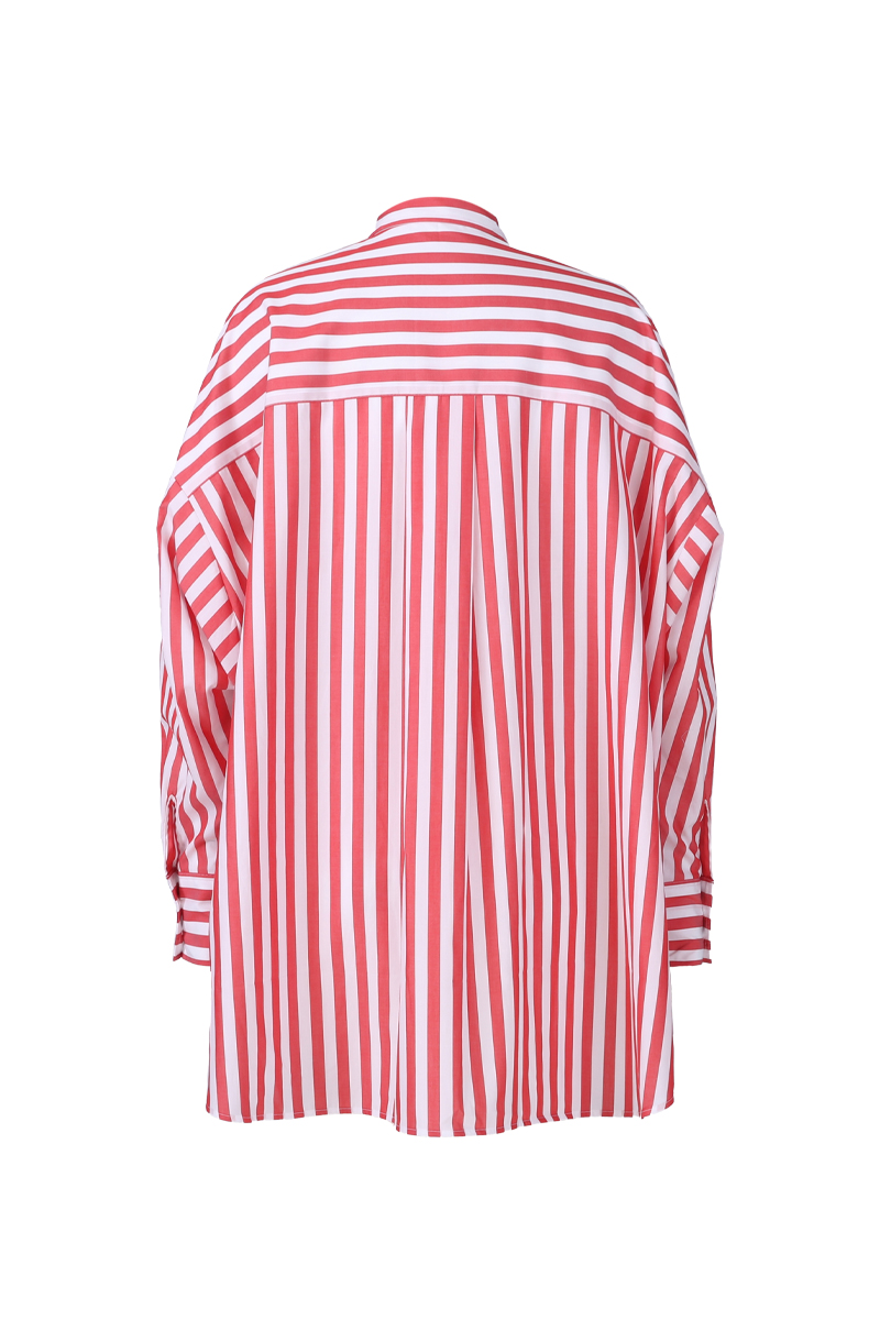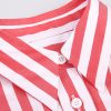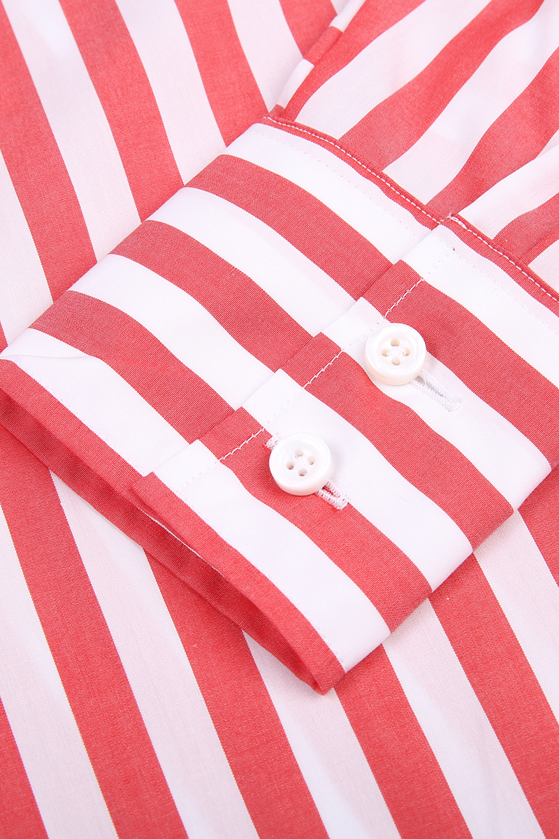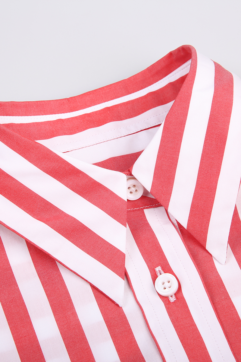 Camisa holgada, largo medio, cuello clásico, bolsillo de parche en el pecho y dobladillo curvo. Estampado de rayas rojas y blancas, suave, cómodo y agradable para la piel.