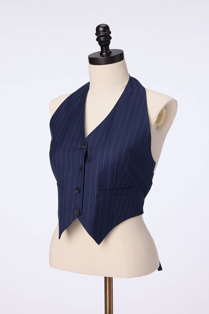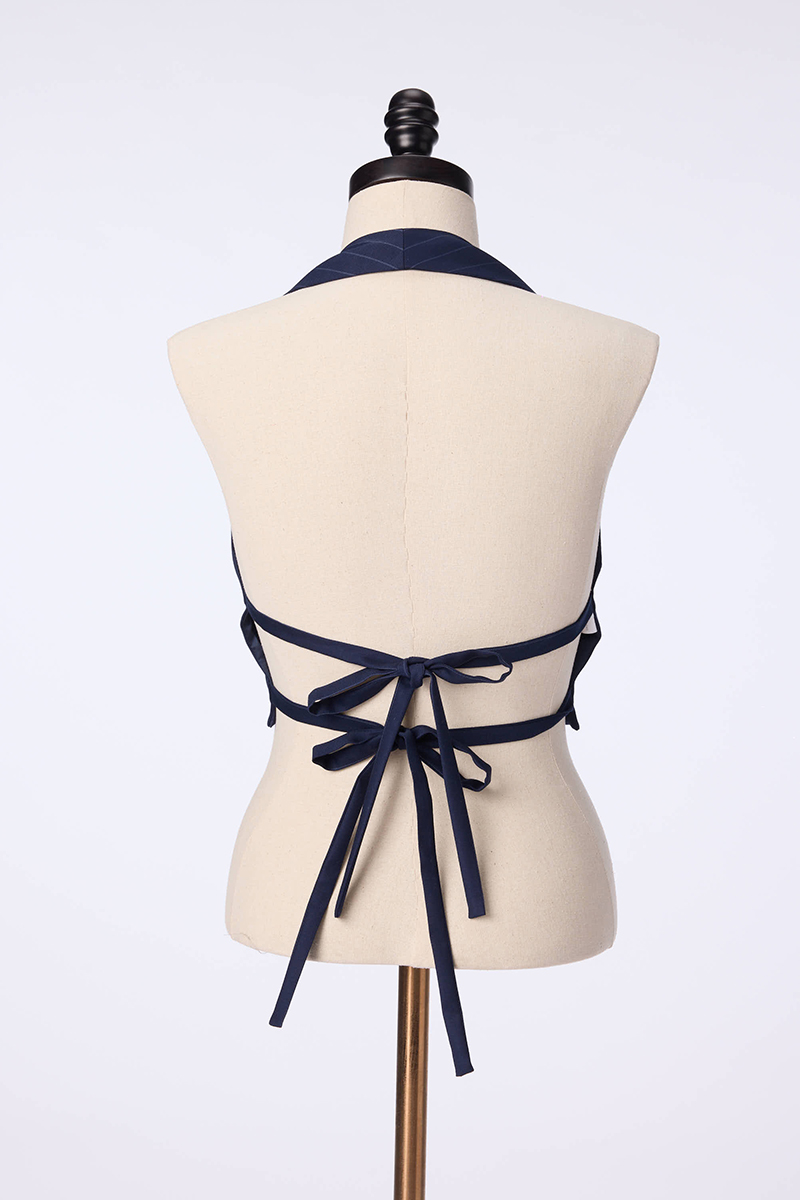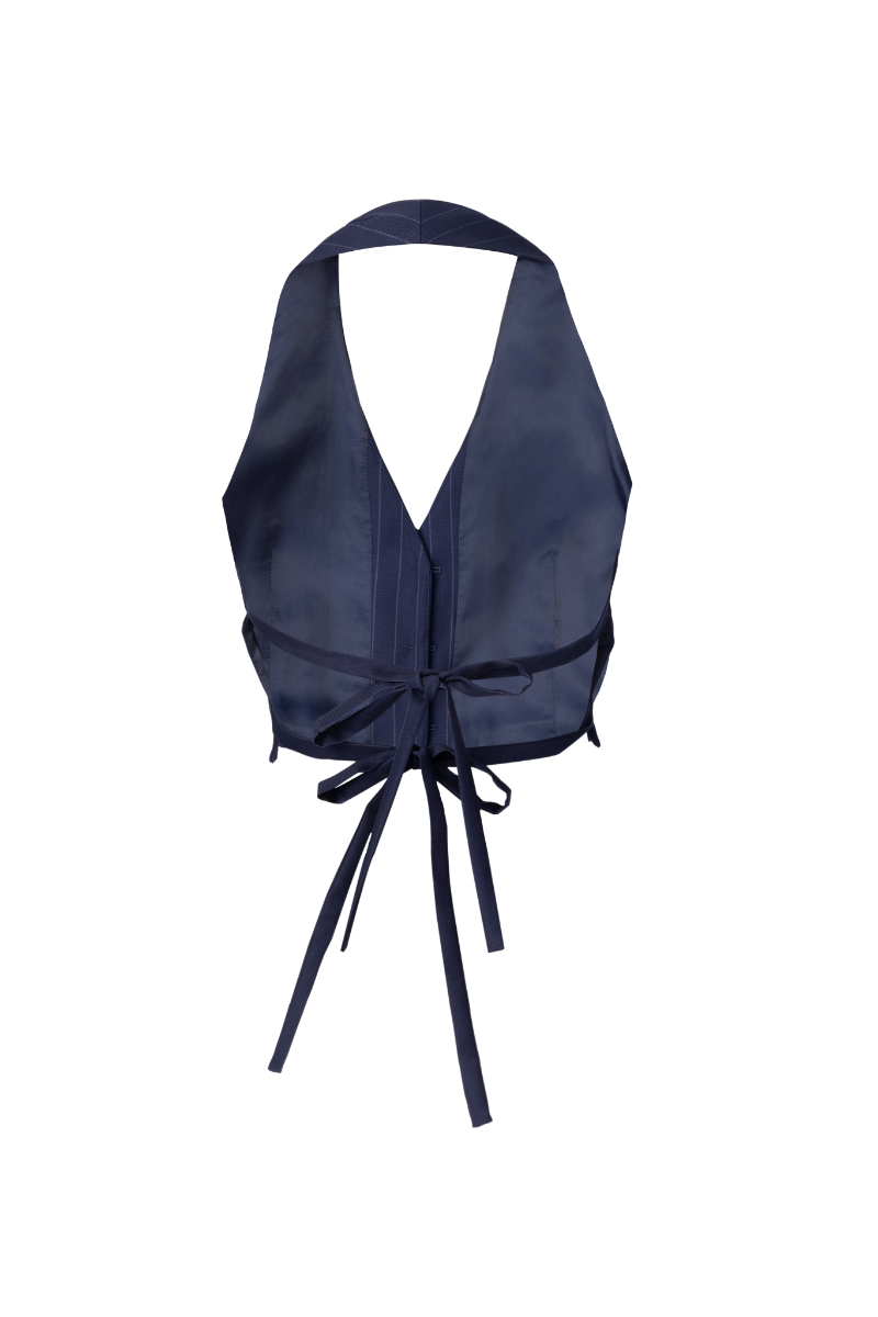 Chaleco halter con escote en V, espalda descubierta, con moños.