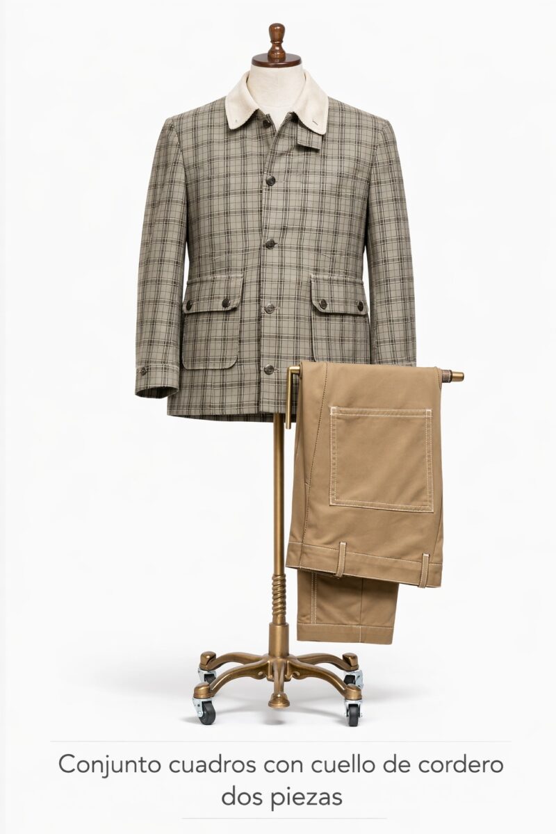 Set con chaqueta a cuadros y pantalón denim que aporta un estilo casual con personalidad.