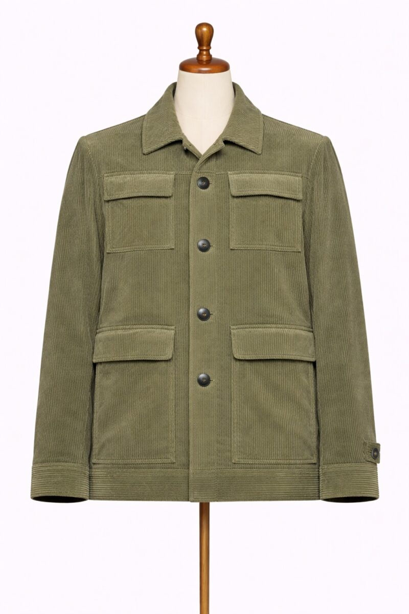 Chaqueta de pana con inspiración utilitaria y un toque elegante y cálido.
