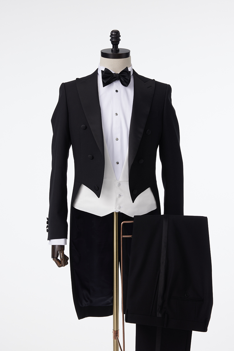 Incluye bow tie, camisa, chaleco, pantalón y frac.