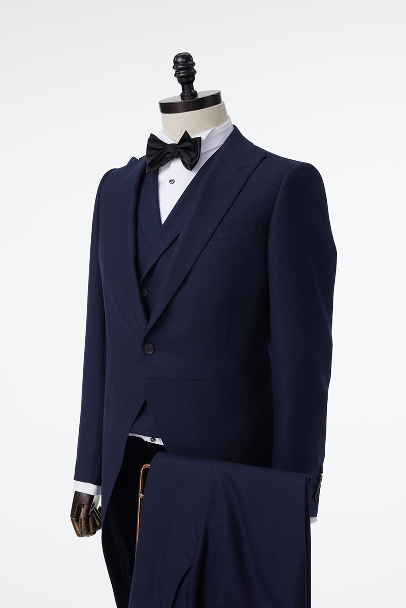 Incluye jaqué, camisa, bow tie, chaleco y pantalón.