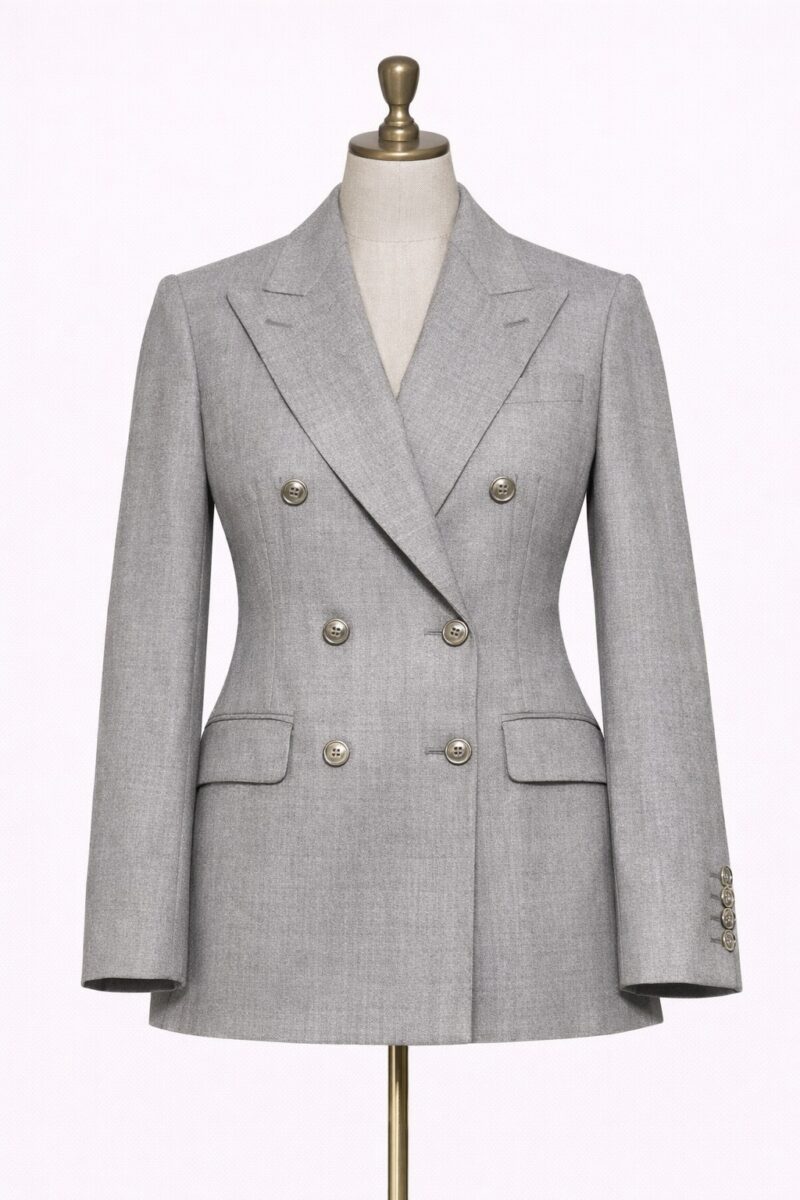 Blazer cruzado de lana con estructura refinada y un aire clásico.