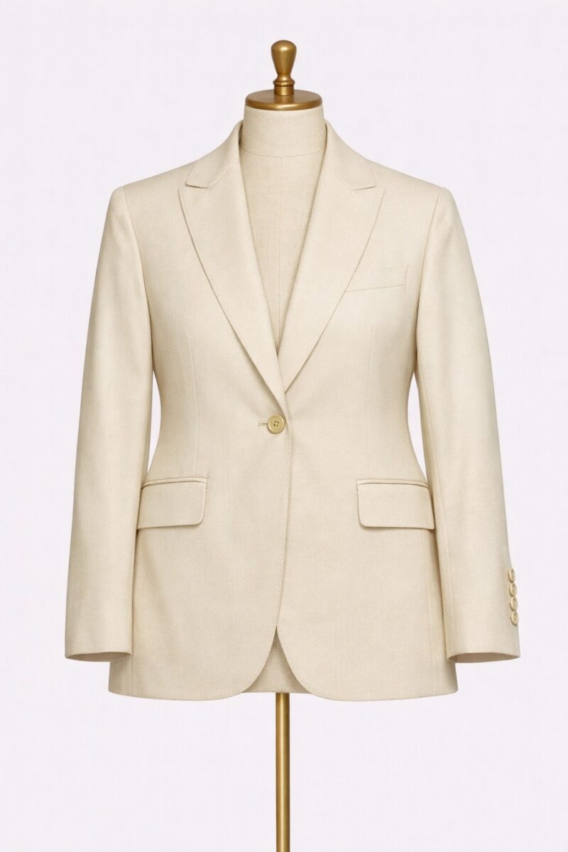 Saco crema de estética ligera y elegante, ideal para un look luminoso.