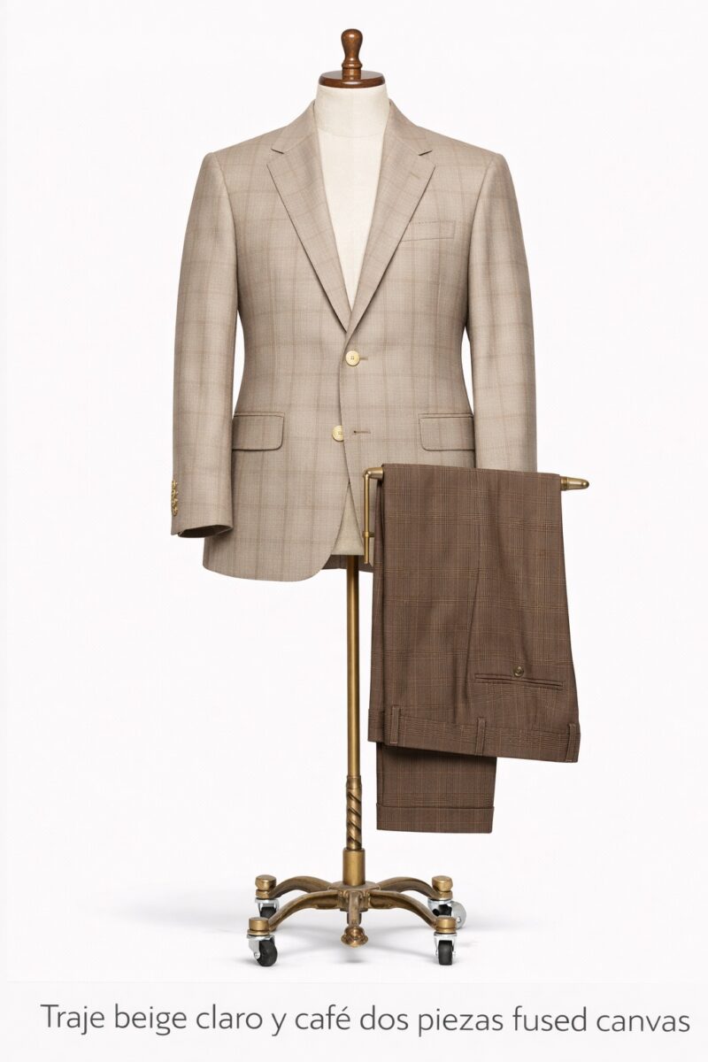 Traje de lana café con una presencia cálida, elegante y atemporal.