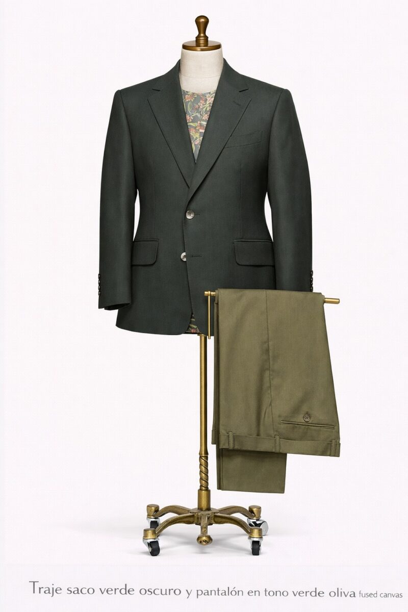 Traje verde de dos piezas con carácter, frescura y estilo refinado.